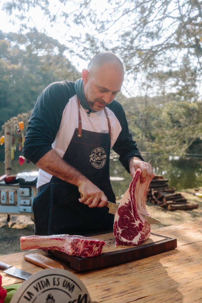 É possível preparar a carne de diversas formas. Para Mancuso, o ideal é grelhar o tomahawk na brasa. “Mas eu gosto de pendurar a carne pelo osso e deixá-la defumando na lenha antes de finalizá-la na grelha”. Também é possível preparar a peça no fogão convencional. “O segredo é iniciar o preparo na chapa ou na frigideira em fogo alto, para caramelizar a carne, o que chamamos de reação de Maillard. Depois, é abaixar o fogo e esperar até chegar ao ponto desejado. Só não esqueça de selar a parte do osso. Senão, a carne em volta dele fica crua”, orienta o parillero do Rincon Escondido. Já o chef Lazzarini utiliza outra técnica para selar a carne. “Antes, eu levo a peça crua ao forno pré-aquecido a 210°C por 45 minutos, em uma assadeir a que permita que o calor circule por toda a peça. Depois, é só selar na chapa. Dessa forma, a carne vai ficar bem mais suculenta”.